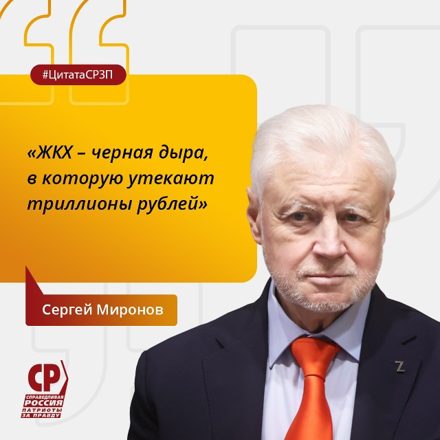 "Без конкретных подтверждений это всего лишь демагогия. Для того мы и требуем провести аудит, чтобы все узнали, за что именно платят. И если затраты коммунальщиков обоснованы, а индексация тарифов правомерна, почему же так боятся проверки? Значит, мы правы, когда утверждаем, что ЖКХ – черная дыра, в которую утекают триллионы рублей. Наши предложения – это единственный способ навести здесь мало-мальский порядок и прекратить беззастенчивый коммунальный грабеж", – заключил Сергей Миронов.
