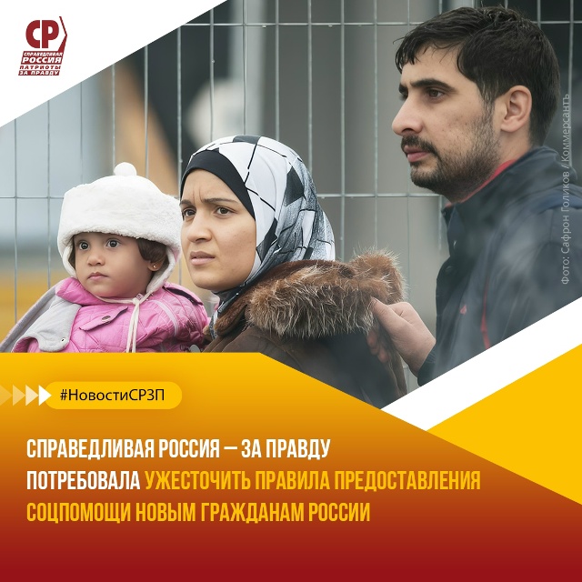 СПРАВЕДЛИВАЯ РОССИЯ – ЗА ПРАВДУ потребовала ужесточить правила предоставления соцпомощи новым гражданам России