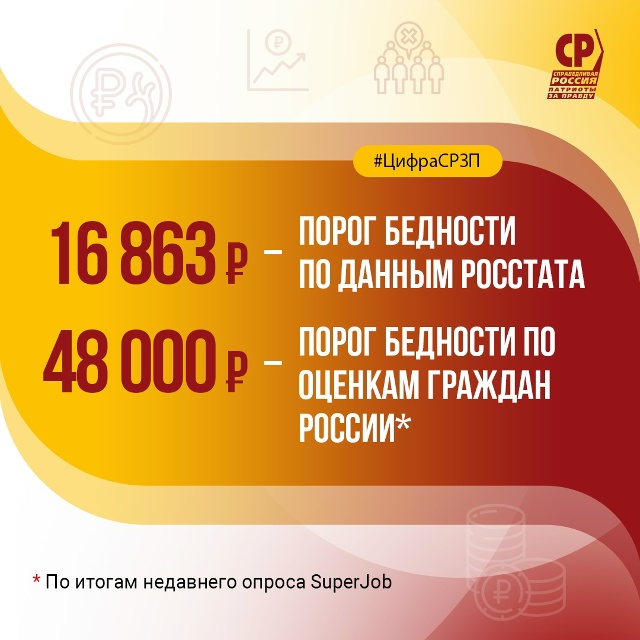 "Это почти втрое выше, чем "граница бедности", которую рисует Росстат, – в 16 863 рубля. Хотя очевидно, что на эти деньги можно жить только впроголодь, это грань не бедности, а крайней нужды, – прокомментировал Сергей Миронов. – Народная оценка бедности вернее расчетов Росстата. Она также соответствует расчетам и исследованиям нашей партии".