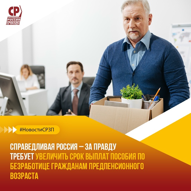 "СПРАВЕДЛИВАЯ РОССИЯ" потребовала увеличить срок выплат пособия по безработице гражданам предпенсионного возраста