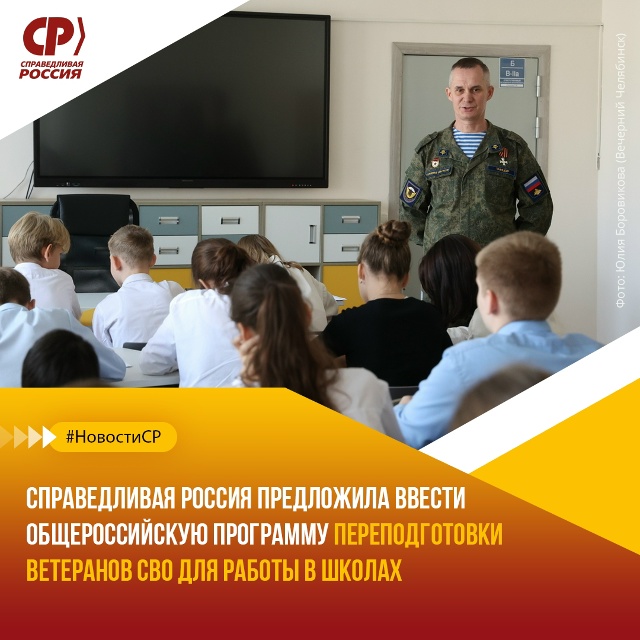 Председатель Партии СПРАВЕДЛИВАЯ РОССИЯ, руководитель партийной фракции в Госдуме Сергей Миронов предлагает ввести общефедеральную программу переподготовки ветеранов СВО для работы в школах.